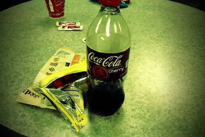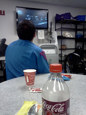 I was trying to see who else was back there and Emily swung the door open and I tried to get Justin to come out into the kitchen but he's in his D-Street costume lol. See Candy Cauldron's itty bitty stock room? To the left is the merchandise and to the right is our 3 compartment sink where we wash dishes. Yeah, not much room for walking!